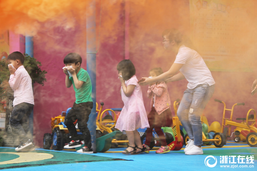 消防演练进幼儿园 萌娃体验火灾逃生