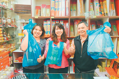台北市环保局推出“环保二次袋”,可做垃圾袋、购物袋两用。