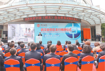 4月1日,中国银行湖北省分行举办武汉自贸区支行揭牌仪式。