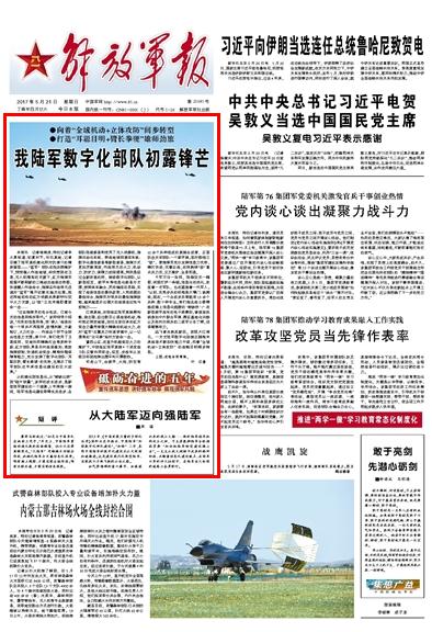 5年弹指一挥间,陆军信息化建设取得长足进步:各部队陆续装备和使用了无人侦察机、指挥自动化系统、野战地域网通信系统、数字化通信装备等新型装备,指挥方式更加灵敏高效,作战单元的火力、机动力、防护力、保障力成倍提高。特别是经过全新改造的师、旅级数字化部队,以新型坦克、装甲车等信息化装备为支撑,按照体系融合、灵活编组的思路,实现了战场信息的最快获取、人和武器的最佳结合、指挥员对单兵的最佳指挥效能,越来越显示出强大的战场适应性与控制力越来越显示出强大的战场适应性与控制力。请关注今日出版的《解放军报》为您带来的报道: