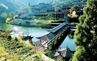 据当地县志记载:“有潭七,名七星潭。其一最高,相传神龙居所。……岩上瀑布两道,喷薄如雨,虽盛暑亦寒气袭人。”得天独厚的旅游资源如今逐渐被深度开发,竹筏漂流、峡谷攀爬等项目吸引了许多爱冒险的年轻人,给这静谧了许久的古村制造了些许喧嚣,但也带来了更多活力。