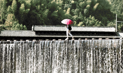 黄林村的水是极好的。一湾溪流,清澈见底,蜿蜒在村间,穿梭于山谷,试着喝上一口,竟是甜的!若有心探险,只需沿着矴步溯溪而上,直到村庄的后山。只见10多个绿幽幽的深潭散布山谷间,其中有7个落差较大的水潭尤为幽深,凑近一看,潭底岩石斑斓,碧水涟涟,难怪常有人赞黄林村是“江南小九寨”。