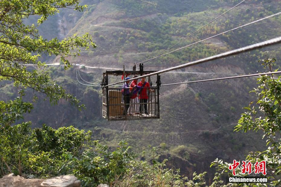 5月22日,记者从四川省凉山州委宣传部获悉,横跨川滇两省边界的金沙江上被称为“亚洲第一高溜”的“鹦哥溜”将要“退休”。取而代之的是即将建成的金沙江特大桥,大桥宽度为9米,长度385.2米,预计今年12月底完成主体工程,2018年5月竣工通车。 徐湘东 摄