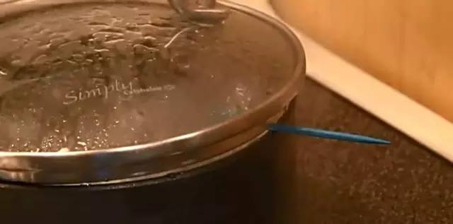 将牙签放在锅盖与锅中间