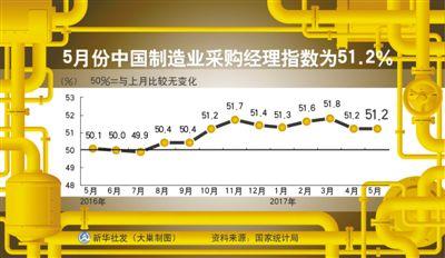 中国物流与采购联合会、国家统计局服务业调查中心31日发布,5月份中国制造业采购经理指数(PMI)为51.2%,同上月持平。从主要分项指数来看,产成品库存指数、购进价格和出厂价格指数下降较为明显,降幅超过1个百分点,其余指数变化不大。PMI显示,当前经济运行继续保持稳中向好。