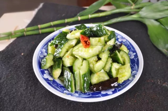 黄瓜性寒,具有除热、利水利尿、清热解毒的功效,生吃、凉拌、熟吃均可,对肥胖者和高血压、高血脂患者有利。此外,黄瓜中含有丰富的维生素E和黄瓜酶,有很强的生物活性,可起到美容养颜、延缓衰老的作用。