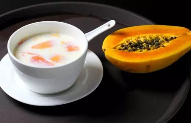 1、将木瓜去皮、从中对剖,挖去籽和瓤。