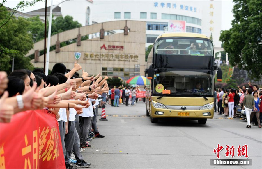长沙一学校全体师生为高三学子送考 仪式持续17年