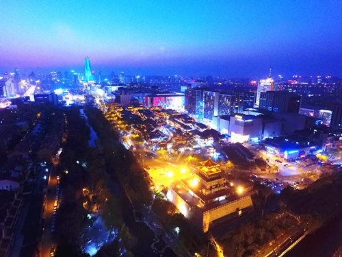 5月18日,航拍的济南泉城广场。 徐速绘 摄