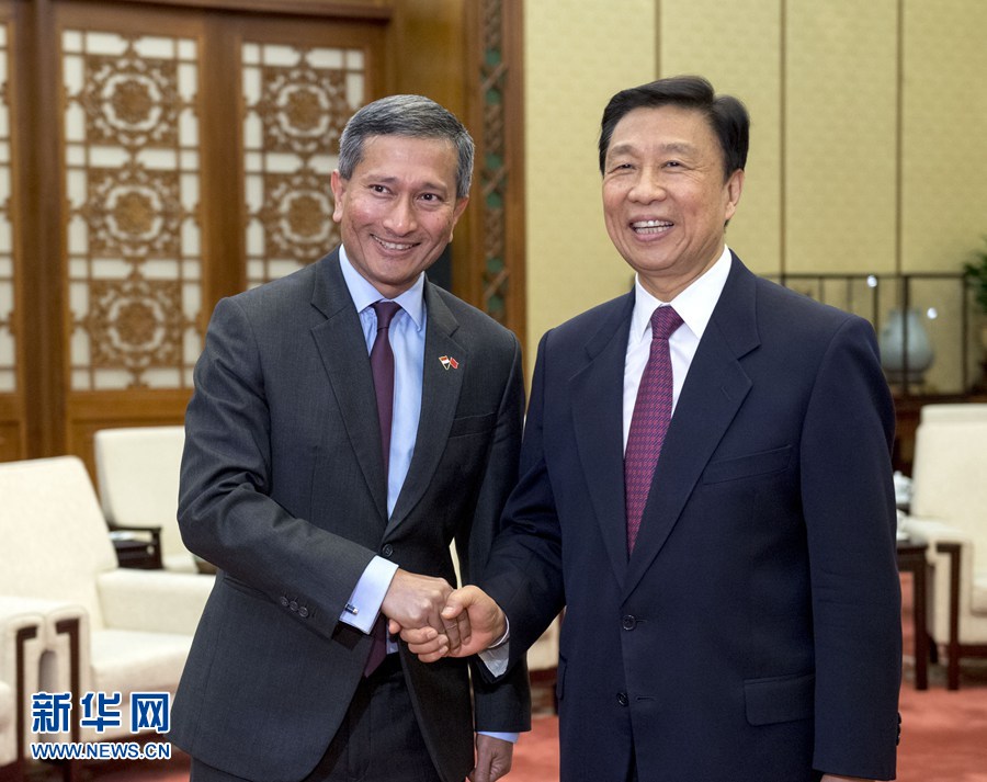 6月12日,国家副主席李源潮在北京会见新加坡外长维文。 新华社记者李学仁 摄