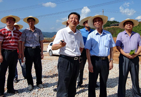 图为廖俊波(前中)在政和县同心工业园区调研(2013年5月23日摄)。新华社发