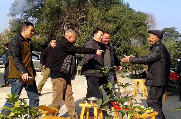 图为廖俊波(右三)在政和县松源村走访慰问群众(2014年2月1日摄)。 新华社发(李福兴摄)