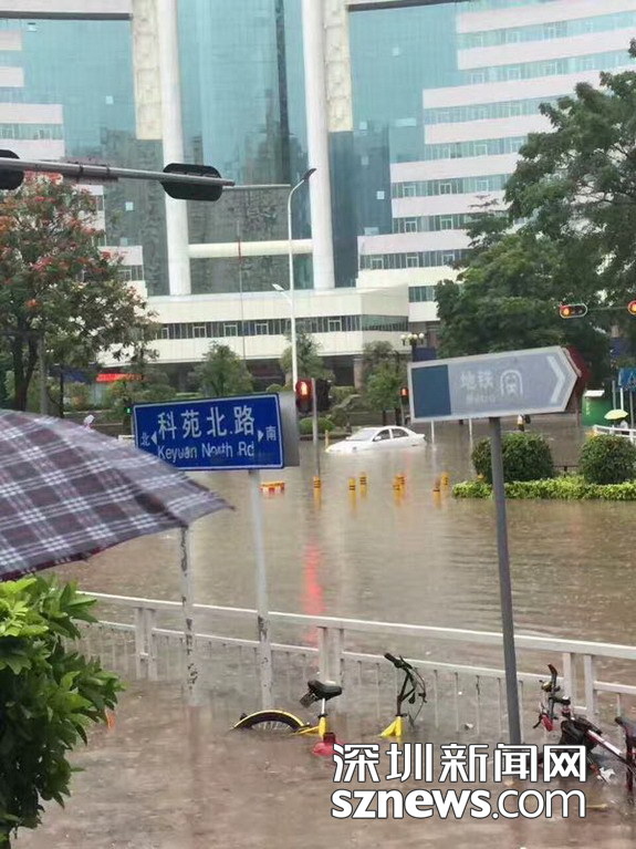 深圳强暴雨道路积水严重 部分地铁站点遭水淹