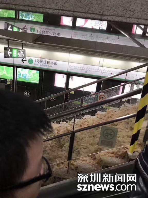 深圳强暴雨道路积水严重 部分地铁站点遭水淹