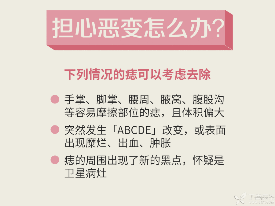 9. 慢性摩擦被认为是良性痣恶变的主要原因,所以我们要避免对痣的刺激,长有痣的部位应尽量避免刺激和摩擦。