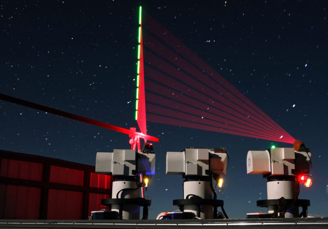2016年12月10日,在西藏阿里观测站,“墨子号”量子科学实验卫星过境,科研人员在做实验(合成照片)。新华社记者 金立旺 摄