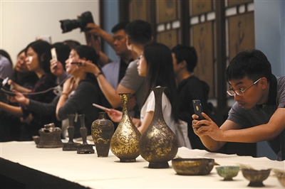 6月22日,故宫在建福宫展示何刚捐赠的元代银器。当日,故宫博物院为何刚举行追思会。新京报记者 浦峰 摄