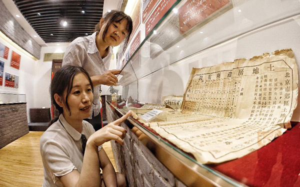 6月28日,两位北京市丰台区的市民在参观党史馆内陈列的文物。6月28日,卢沟桥乡大瓦窑村党史馆开馆。大瓦窑村党支部成立于1924年,是在当地共产党员张永祥带领下成立的北京第一个农村党支部。