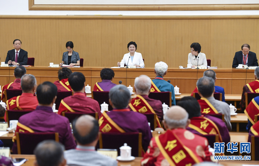 6月29日,中共中央政治局委员、国务院副总理刘延东在北京接见第三届国医大师和首届全国名中医代表并座谈。 新华社记者 张领 摄
