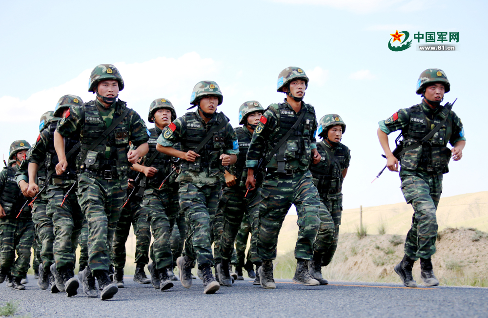 特战队员在进行20公里武装奔袭课目训练。