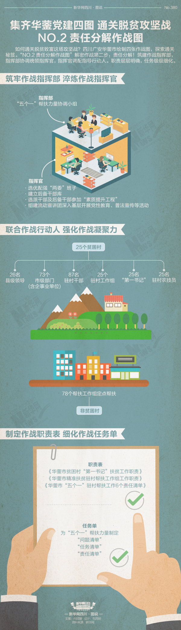 打赢脱贫攻坚战,关键在党。这种关键,体现为党在脱贫攻坚中所扮演的四种角色,战略制定者、头号责任人、过程把控师和冲刺指挥员。如何让党在脱贫攻坚中所扮演的关键角色深入人心?如何让党在脱贫攻坚中所发挥的关键力量取得实效?如何用“党建担当”促推“脱贫攻坚”?四川广安华蓥市绘制四张作战图,从实操侧阐述党在脱贫攻坚过程中的角色定位和使命担当。