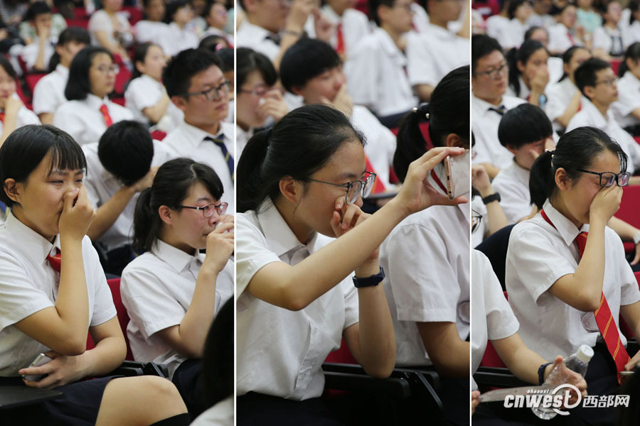 西安一中学举行初中毕业典礼 学生走红毯哭成泪人