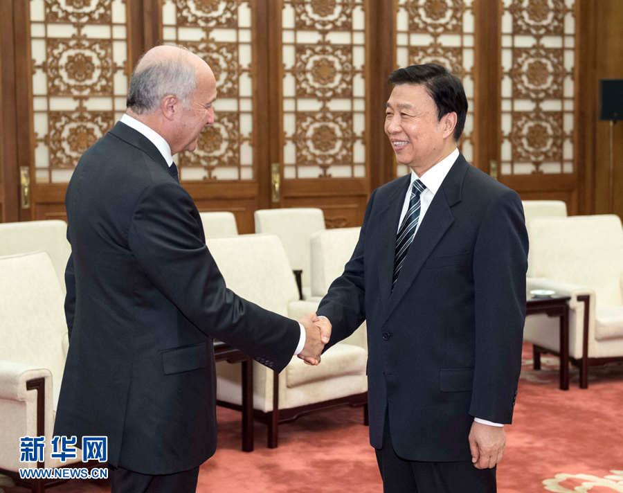 7月5日,国家副主席李源潮在北京会见法国宪法委员会主席法比尤斯。 新华社记者 李涛 摄