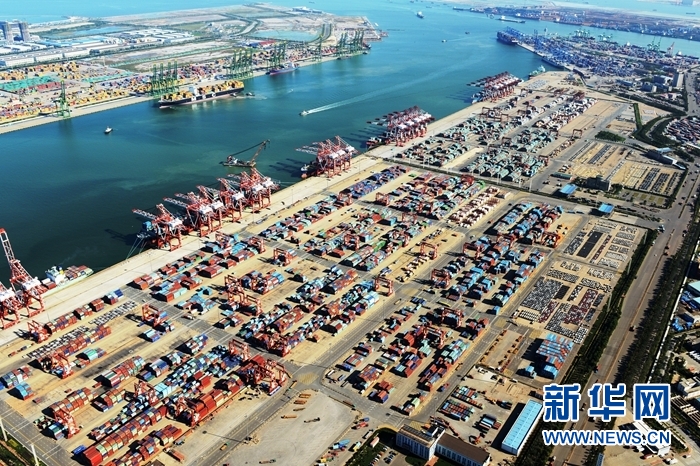 图为天津港集装箱码头群。(天津港集团供图,新华网发)