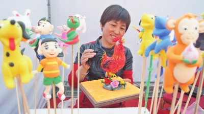 今年42岁的刘敏,是山东省阳谷县阿城镇阿西村村民,从小跟着爷爷学习捏面人,后到河南郑州专习面塑艺术,并拜全国知名面塑艺人为师。她善于学习和创新,把传统面塑技艺和现代卡通艺术进行巧妙有机的结合,创作出的人物及动物性格鲜明、形态各异、栩栩如生,被列入山东省“非遗”项目,在省、市及全国举办的“非遗”成果博览会上多次荣获金银铜奖。面塑让刘敏享受精神愉悦的同时,也给她带来了可观的经济收入。图为刘敏向游客现场展示面塑作品。 陈清林摄