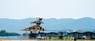 歼-10B战机起飞瞬间。