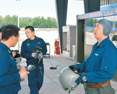 空军飞行员做起飞前的准备工作。