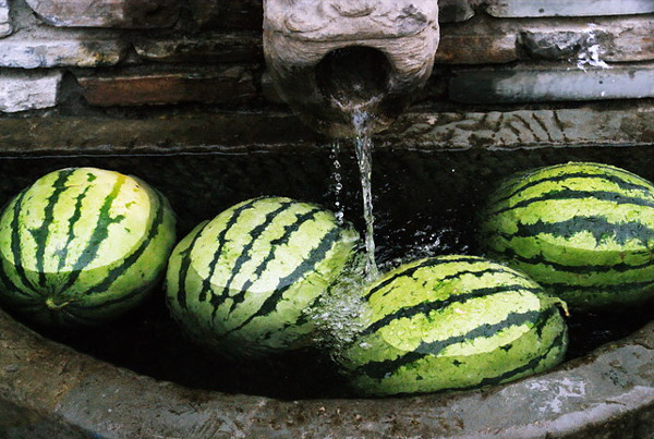 以上的消暑方式基本还都限于皇家宫中,而冰镇食品在清代已相当普遍,寻常百姓也可一尝。清代《京都风俗志》中记载,“伏日,人家有食盛馔异于平日者,谓之贴伏膘,或以此日起有捨冰水者,或有煎苏叶、霍香叶、甘草等汤于市中捨之,谓之暑汤”。那时在伏天,有人喝冰水,有人煎熬苏叶、藿叶、甘草等汤,称之为暑汤,还在街上出售。