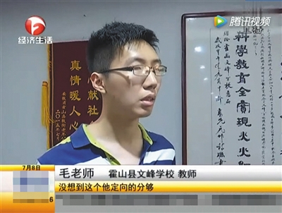 7月11日上午,记者获悉,霍山县教育局已经向上级六安市教育局提交文件,申请为该考生调配一个指标能让考生重新填报志愿,同时对霍山文峰中学进行通报批评。