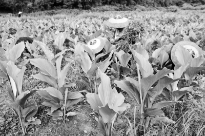 7月8日,贵州省锦屏县新化乡欧阳村中药材基地里,10多名农事钟点工正在给长势喜人的中药材温郁金除草。