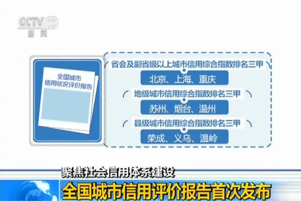 全国城市信用状况评价报告显示,北京、上海、重庆位列省会及副省级以上城市信用综合指数排名三甲,苏州、烟台、温州摘得地级市排名三甲,而县级市排名前三位的则是荣成、义乌和温岭。