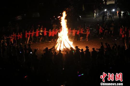 图为篝火晚会载歌载舞。 叶建伟 摄