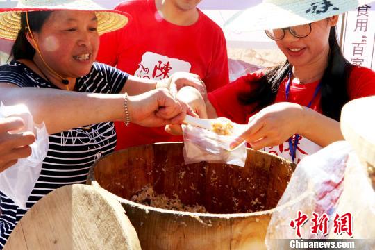 图为当地举办的百家饭。 陈志捷 摄