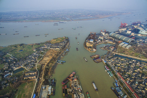 航拍大运河镇江谏壁船闸 封疆江摄