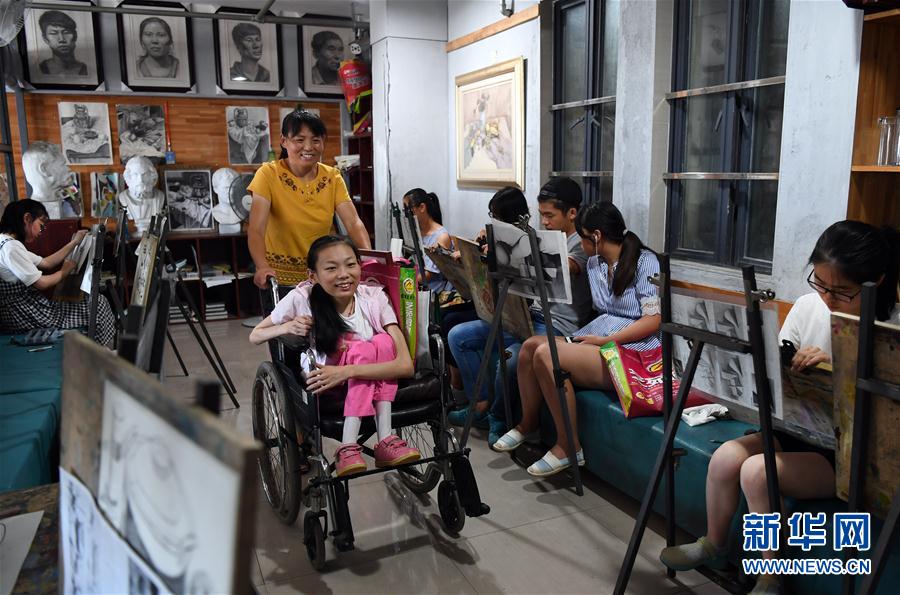 7月25日,盛悦在妈妈的陪伴下来到画室学习。