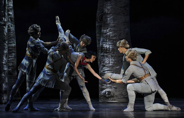 辽宁芭蕾舞团演员在表演《八女投江》的“激战”章节(7月25日摄)。 7月25日晚,辽宁芭蕾舞团芭蕾舞剧《八女投江》在新疆人民会堂上演。该剧通过芭蕾舞与东北秧歌及朝鲜族舞蹈“阿里郎”相结合的艺术形式,演绎八女投江革命故事,令观众重温了一场别样的“红色记忆”。