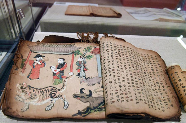 这是参展展品彝文《百乐书》(7月25日摄)。“百乐书”系彝语音译,是滇南彝族对民间流传的一种彝文典籍的统称,其特点是用图、文对照的形式反映流传地彝族的社会和生产生活情况。当日,“民族遗珍书香中国——中国少数民族古籍珍品暨保护成果展”全国巡展(北京站)在北京国家博物馆开幕。本次展览共分中国少数民族古籍概说、民族遗珍、薪火相传、书香中国、保护工作概览五个部分,精选现存少数民族古籍中具有代表性和重要文献价值的珍贵原件共178册(件),以及部分省市区30多年来整理出版的少数民族古籍大型出版成果16种、1000册,让观众领略少数民族古籍特有的文化魅力。