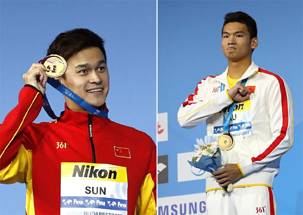 孙杨和徐嘉余7月25日在国际泳联游泳世锦赛上实现了突破,一个用男子200米自由泳金牌填补了个人荣誉簿的空白,个人首次在200米和400米上实现单届世界大赛双冠,另一个让中国运动员在男子仰泳项目的世锦赛最高领奖台上有了一席之地。