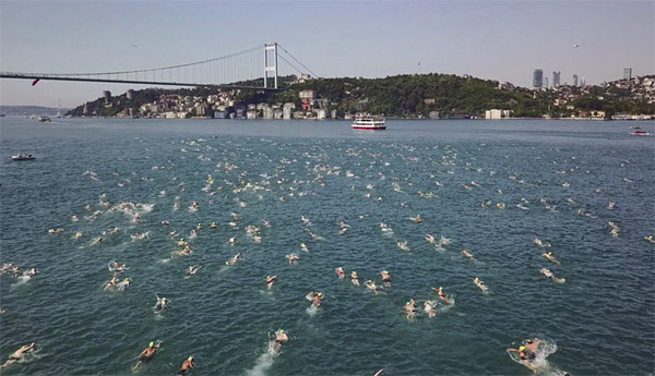 跨欧亚大陆!2000多人横渡海峡游泳比赛