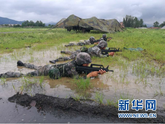 陆军第78集团军某营,近距离观摩了侦查、掩护、打击等课目的步兵班组战术演练。图为步兵在进行战术演练。新华网薛涛 摄