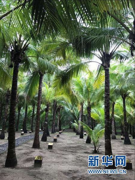 7月26日,网络媒体国防行采访团走进海南省三亚市海防旅东瑁洲模范海防连。图为东瑁洲岛上茂盛的椰树林。新华网梁甜甜 摄