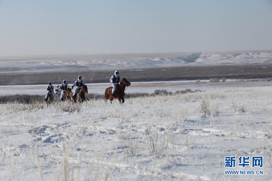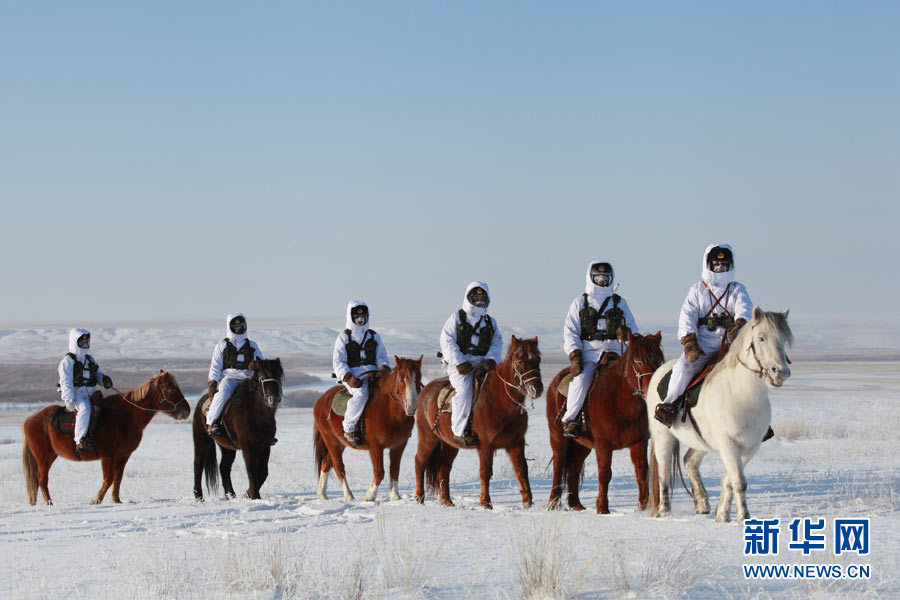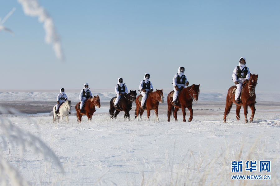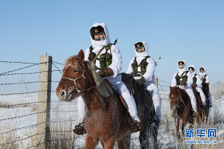 戍边官兵冬季在边防线上巡逻执勤。陈在林 摄