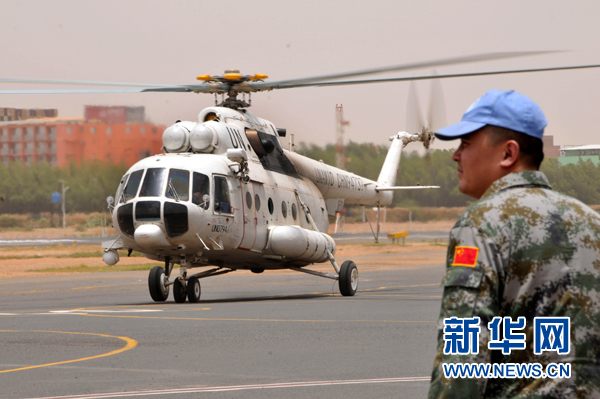 今年6月11日、12日,中国空运先遣组24人搭乘装载维和直升机的大型运输机,分两批次先后抵达喀土穆国际机场。据悉,首批直升机分队配备了4架中型多用途直升机,主要担负空中巡逻、战场侦察、人员输送、伤员转运、物资运输等任务。