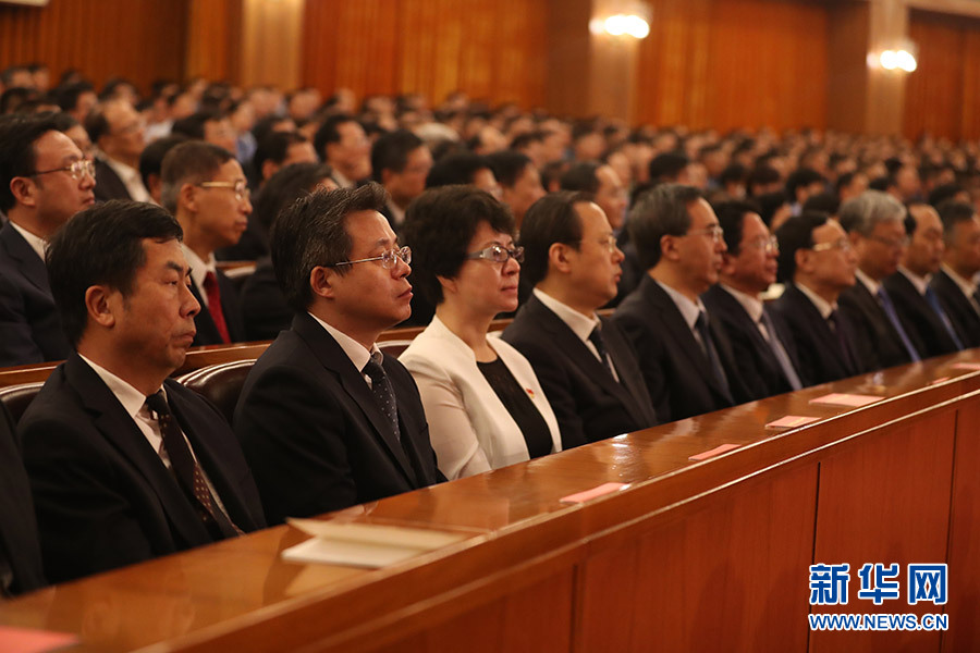大会8月1日在人民大会堂举行。图为与会人员认真听会。新华网 陈杰 摄