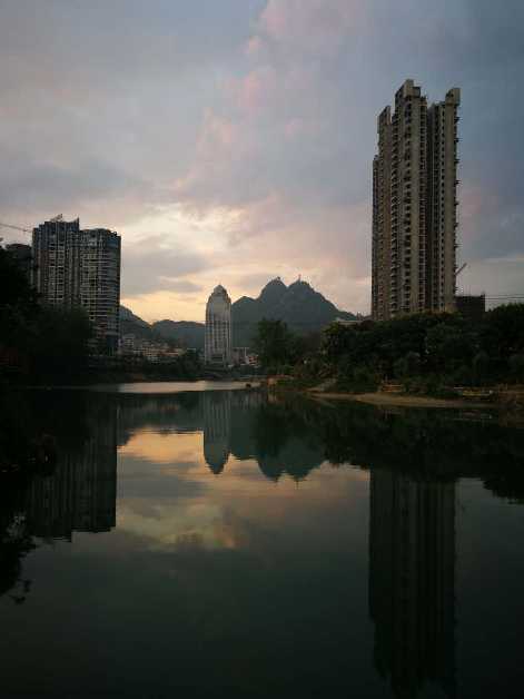 暑高喜风清,雨后见月明。彩虹锦江夜,轻舟泊铜仁。