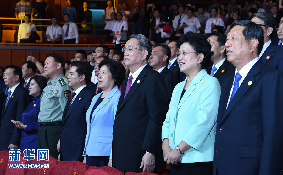 8月7日,庆祝内蒙古自治区成立70周年文艺晚会《赞歌》在内蒙古乌兰恰特大剧院举行。中共中央政治局常委、全国政协主席、中央代表团团长俞正声和各族各界干部群众等共约1300人观看演出。新华社记者 张领 摄